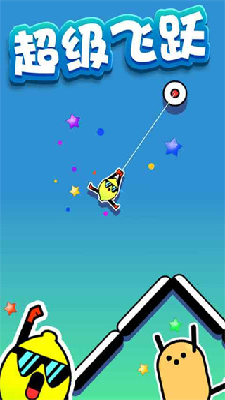 2、通過手指點擊的方式來控制小人的飛行,需要掌握好脫離繩子的時機,才不會掉下去。