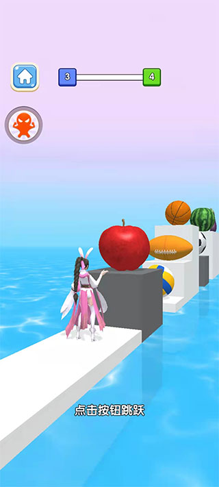 1、首先打開在本站下載的壓扁一切游戲,開始游戲后,只需點擊屏幕即可跳躍。