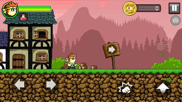 4、等待一會加載,游戲內左邊兩個按鈕控制角色左右,右邊則為攻擊和跳躍鍵;