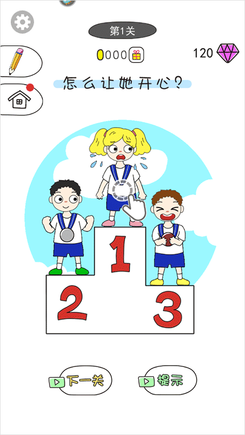 1、下載并打開游戲,在小女孩的身上畫個(gè)圈,讓她開心起來;