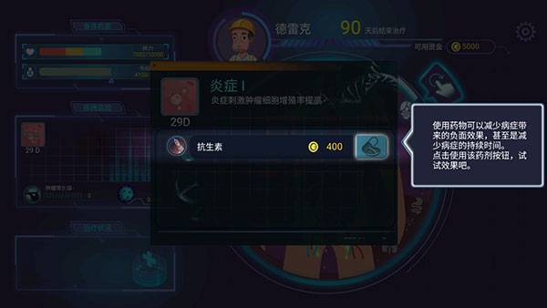 2、游戲采用生活化的模式,精心平衡患者的體力、免疫力和腫瘤消除情況,為玩家提供一個(gè)全面了解腫瘤治療復(fù)雜性的平臺。
