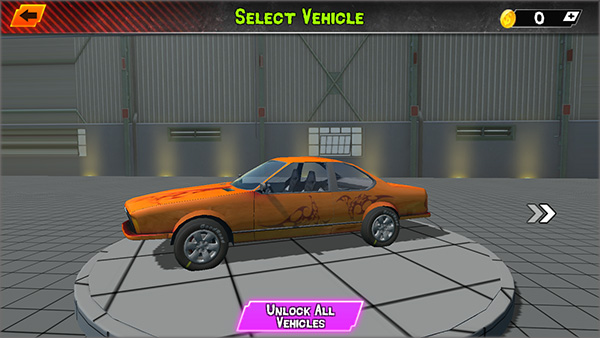 1、下載安裝好車禍也瘋狂(Car Crash),選擇一輛汽車進行游戲,當你有足夠的金幣時可以解鎖多種的車輛。