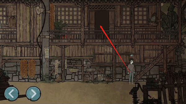 3、向右來到住所,交談過后走到右邊的竹梯旁上樓