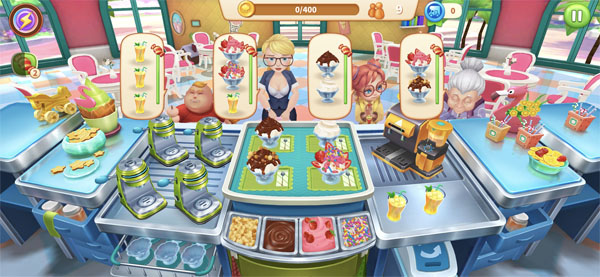 3、創(chuàng)新游戲機制:玩家需要升級食材和廚具,使用各種炫酷道具,通過連連上菜來觸發(fā)烹飪特效,幫助玩家更快地完成關(guān)卡;