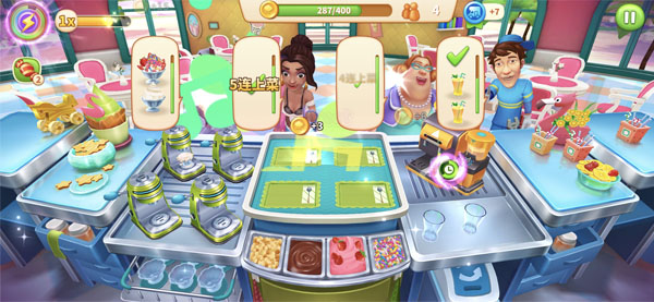 細心地玩家可能已經(jīng)發(fā)現(xiàn)了,在文中的第一張圖中,已經(jīng)把糖給了顧客,所以,才能放肆的進行'連連上菜'!