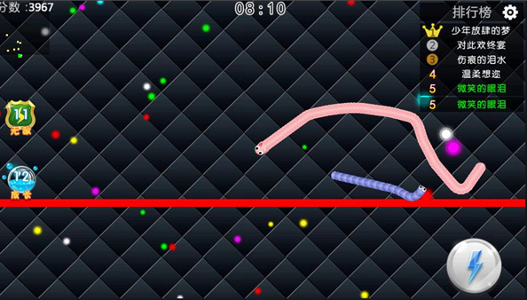 4、點擊左邊的無敵可以使你的蛇蛇獲得暫時性的無敵;