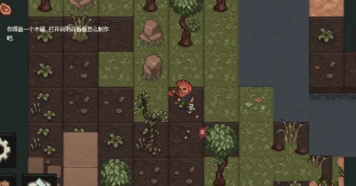 3、進入游戲后,會有教程指導你每一步該做什么,還是那句話,要致富先擼樹,捶倒一棵樹后,做個木斧,多砍幾顆先。(將材料一次次拖進制造格,樹枝空手加工成棍,原木加工成木,加工后記得把產(chǎn)物拖回背包,否則很大幾率會消失。加工讀條點叉子可以跳過。)
