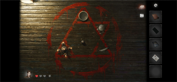 9、我們還需要在古董店后門里找到一把錘子,進(jìn)去服裝店撬開1個木板封住的門,里邊有個很奇怪的標(biāo)志,然后還有一本紅色的書;