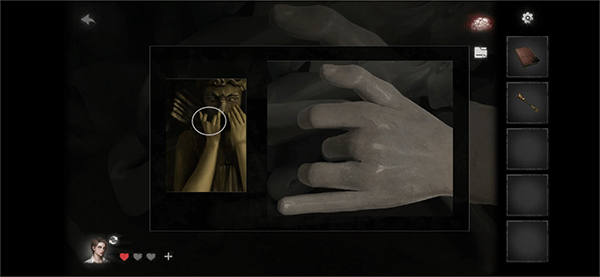 回到女的,我們退出來哭泣天使的手勢變了,根據(jù)這些手勢,解謎商城里倒下的那些雕像手勢,得到紅寶石;