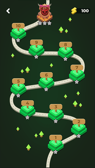 1、進(jìn)入游戲后,首先要選擇需要挑戰(zhàn)的地圖,當(dāng)前一個地圖收集到一定的五角星才能解鎖新的地圖;