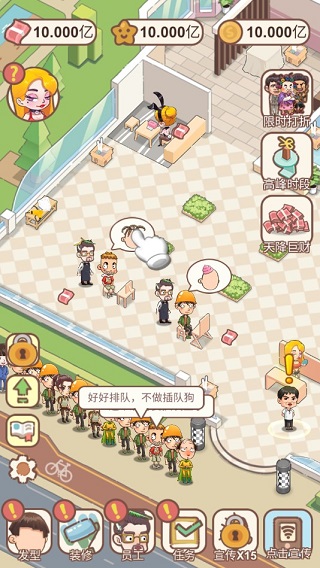 2、之后的發(fā)型收到的現(xiàn)金會(huì)比前面的發(fā)型要多一些,這倒是原原本本的照了經(jīng)營(yíng)的套路,但是它的點(diǎn)擊右太過(guò)于繁瑣,然后你招來(lái)之后又得點(diǎn)他頭上的發(fā)型標(biāo)志才能剪發(fā)一個(gè)還好,但是最后解鎖6個(gè)理發(fā)臺(tái),再加上客人會(huì)隨意走動(dòng),變得眼花繚亂,且開(kāi)始產(chǎn)生煩躁。派發(fā)傳單和點(diǎn)擊客人是可以同時(shí)進(jìn)行的,也就是兩手準(zhǔn)備。當(dāng)你感到迷茫的時(shí)候,可以看一下在線任務(wù)。他會(huì)指引你下一步該怎么做。