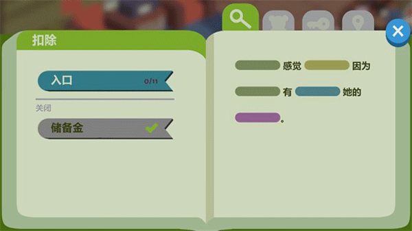 有填空式的推理環(huán)節(jié),根據(jù)收集到的證據(jù)來填補(bǔ)關(guān)鍵信息,還原案件的經(jīng)過。