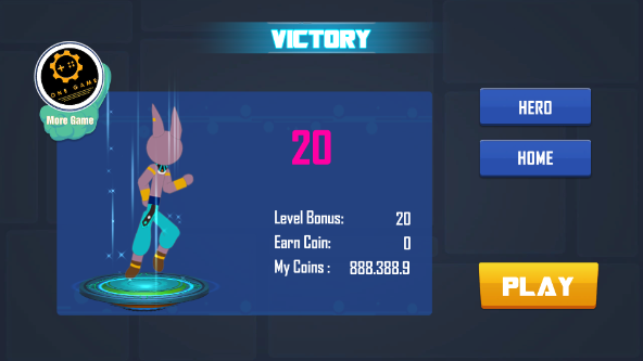 1、進(jìn)入游戲后,右上角設(shè)置中可對(duì)游戲中的,音效與背景音樂進(jìn)行關(guān)閉或開啟。“hero”中可切換不同的人物,如下圖所示