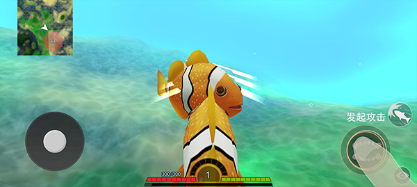 3、遇到其他魚兒之后,點擊右下角第一個鍵位發(fā)起攻擊;