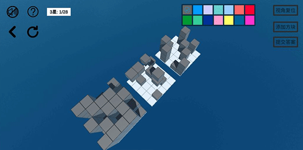 空間想象力2游戲是一款全新的休閑解謎類游戲,游戲中玩家要觀察已知方塊的變化來推測未知的方塊的樣式,然后還原至原始狀態(tài),玩家成功完成一個關卡,玩家可以自定義方塊的顏色,讓玩家能更直觀的體驗到色彩變化對空間推斷的影響,歡迎到本站下載試玩。
