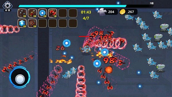 左側(cè)是虛擬搖桿的操控按鈕,游戲內(nèi)角色的攻擊會自動進行,你要做的便是移動,躲避怪物的圍剿。