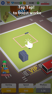 2、點(diǎn)擊屏幕中央可以加快工人的工作速度。