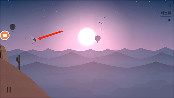 5、經(jīng)過大坡,我們可以按住右邊屏幕進行后空翻,獲取更高的分數(shù),注意不要頭先著地,