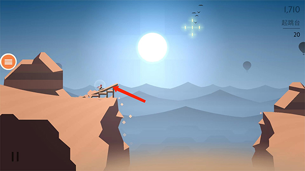 1、打開阿爾托的奧德賽游戲,開始向前滑行,前方就是大鴻溝了,在快要到達鴻溝之前全力加速,等你的速度達到一定程度,繼續(xù)向前滑行,