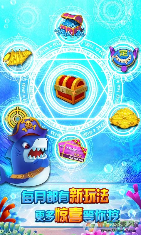 游戲中有不同的魚群,回報的金幣數(shù)也不盡相同。只要對準(zhǔn)屏幕上的魚群點(diǎn)擊,就會發(fā)射出網(wǎng)來捕捉,玩家將體驗(yàn)到前所未有的爽快感。更有前所未有的獨(dú)創(chuàng)攻擊,可使用激光或者全屏撒網(wǎng),讓捕捉的魚數(shù)加倍,金幣加倍。細(xì)膩的3D畫面,隨機(jī)暢游世界四大洋,使人一覽唯美海底風(fēng)情。游戲界面更讓人有在船上的錯覺。更可以隨時使用水族館模式獨(dú)享快樂捕魚時光。