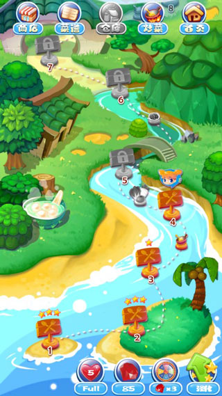 二星:過關(guān)、吃貨妹子沒掉血、沒完成任務(wù);或者過關(guān)、完成任務(wù)、吃貨妹子掉血了。