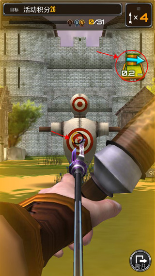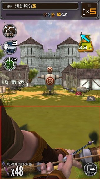 該游戲是通過簡單的觸摸控制,你需要在下面紅色方框內來拉動弓箭,并進行瞄準射擊。