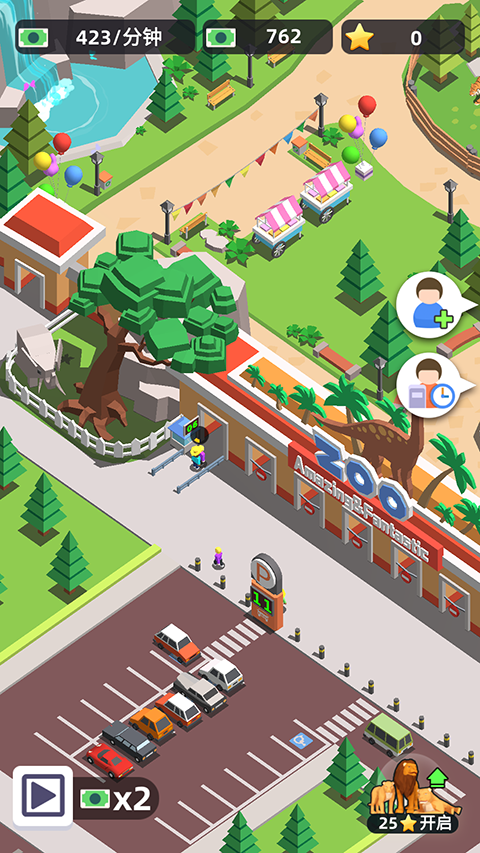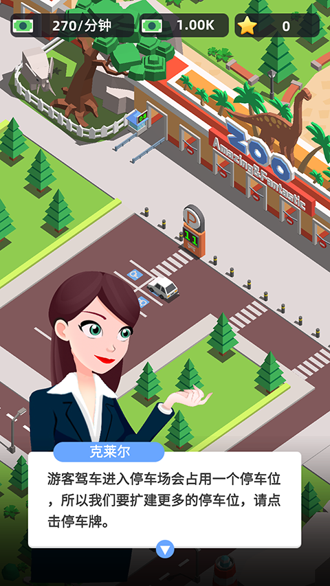 1、動(dòng)物園之星游戲內(nèi)停車場(chǎng)是玩家收入來(lái)源之一,我們可以通過(guò)點(diǎn)擊停車牌來(lái)擴(kuò)建停車位。