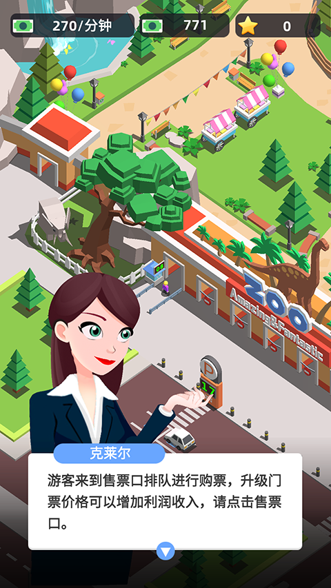 4、通過(guò)點(diǎn)擊售票口進(jìn)入升級(jí)界面,玩家可以通過(guò)提高門票來(lái)提升收入。