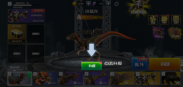 8、另外,玩家還可以在首頁恐龍選擇中任意選擇你要出戰(zhàn)的恐龍,也可以將喜歡的恐龍進(jìn)行升級,升級后的恐龍戰(zhàn)斗力會更強(qiáng)哦
