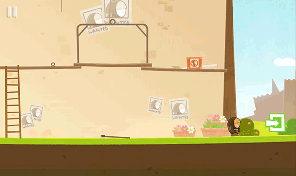 9、移動到圖中位置,點擊手掌,繩子松開,中間平臺掉落。