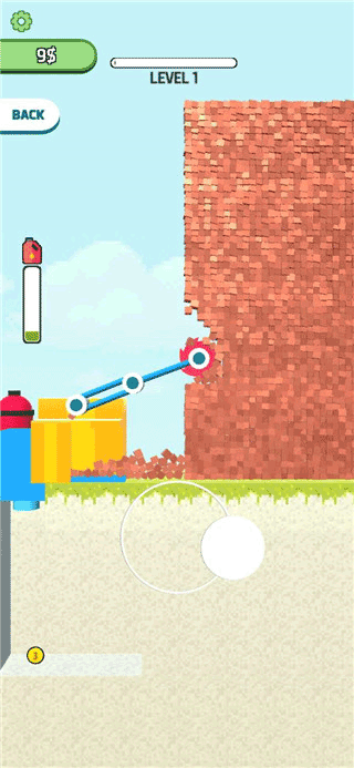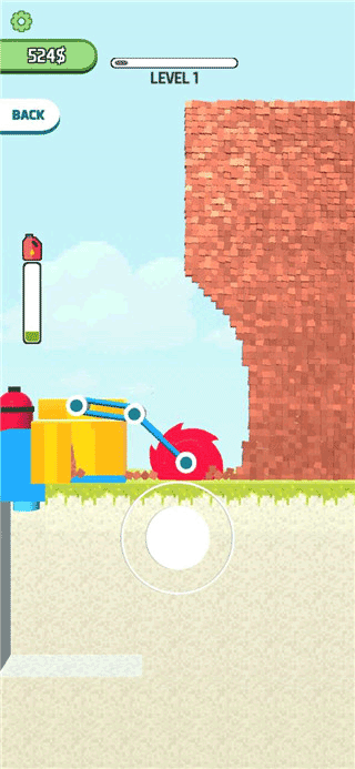 4、按住下方屏幕中的按鈕進(jìn)行操控便可開始拆墻啦