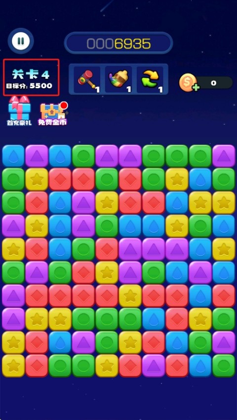 2、游戲采用兩連消的基本規(guī)則,即兩個(gè)顏色相同的星星方塊相連就可以消除。同時(shí),玩家也可以嘗試進(jìn)行多連消,即一次性消除多個(gè)相連的星星方塊,這樣可以獲得更高的分?jǐn)?shù)。