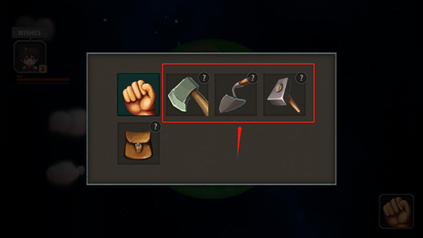 4、想要制造更多有用的工具,玩家需要去采集需要的資源,而有些資源需要對(duì)應(yīng)的工具才可采集,比如錘子采集石頭,斧子采集木材等等,這些工具都可以制造出來(lái),首先點(diǎn)擊星球上的帳篷