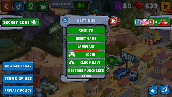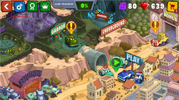 1、打開汽車吃汽車3最新版本,點(diǎn)擊左上角【齒輪】圖標(biāo),