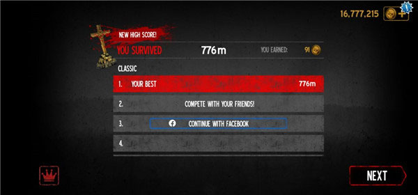 選擇道具之后,玩家點(diǎn)擊"PLAY"即可開(kāi)始游戲,在前進(jìn)過(guò)程中,屏幕左上角會(huì)記錄已經(jīng)奔跑的距離,直到人物角色死亡,