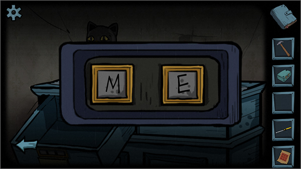 8、這時(shí)候貓的眼睛就有了信息,ME,在柜子上輸入,拿走鑰匙和白貓手臂,把白貓手臂裝到貓貓身上。拿走小貓貓。