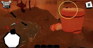 第三個(gè)玩偶在如圖的桶里。利用旁邊類似火山的噴氣孔飛起來進(jìn)去。出來需要點(diǎn)擊右上角的暫停 - -> 我被卡住了 --> 然后選擇飛回起點(diǎn)位置。