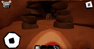 第二個(gè)玩偶在如下圖的洞里。需要去湖底拿一個(gè)類似肉一樣的東西,將其往洞里面扔,然后玩偶就出來了。