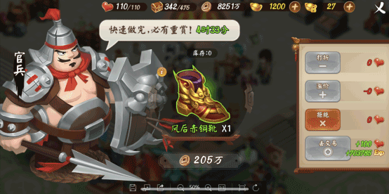每天都有特殊的NPC官兵進(jìn)入你的工坊,按時(shí)完成需求可獲得大量經(jīng)驗(yàn)和銅錢(qián)。