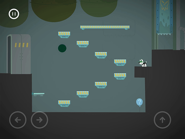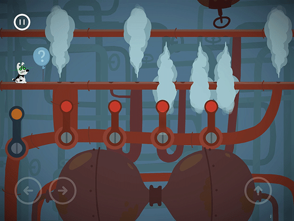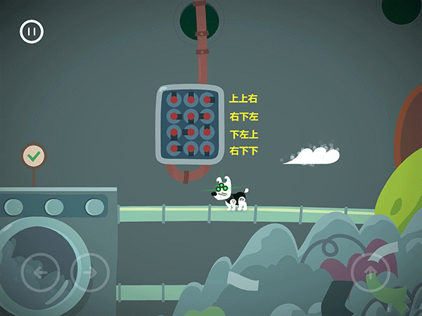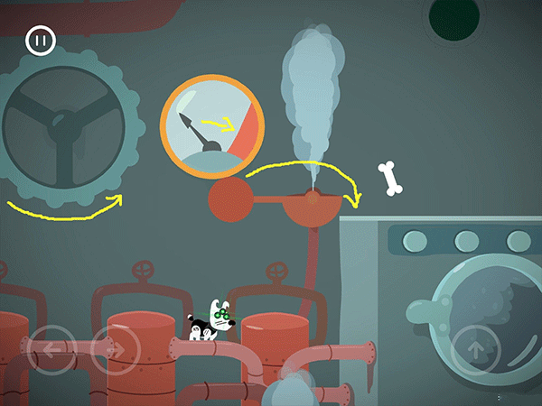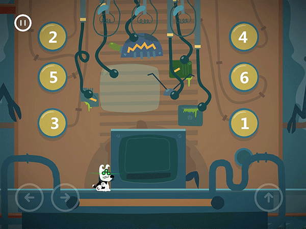 這邊按了左邊黃色按鈕的時候,右邊的門就開始計時下落了。這個板要先從右往左把板弄到最低,然后就可以吃完燈泡和骨頭過閘門。切記不要慌張。