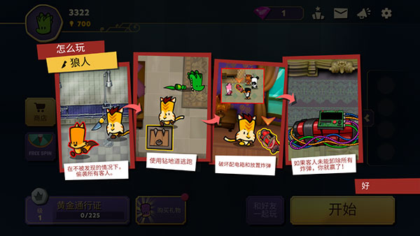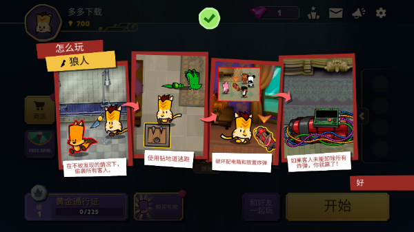 在不被發(fā)現(xiàn)的情況下,偷襲所有客人-使用鉆地道逃跑-破壞配電箱和放置炸彈,如果客人未能卸除所有炸彈,你就贏了!