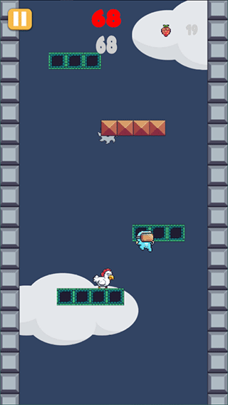 5、跳躍過程中還會有雞、烏龜等等障礙物,碰到它們游戲就結束了,注意躲避;