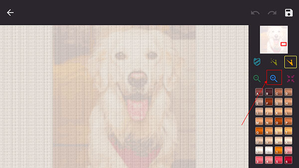 6、右上角圖片可以看到所繡區(qū)域在整副圖的位置,也能隨時保存進度喲,下次直接點擊進入就可以繼續(xù)繡了;