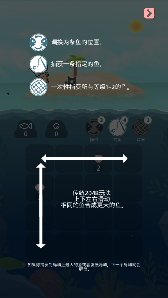 2、大家需要先開始通過2048的方式合成,然后通過釣魚獲得大魚,游戲中也會有具體的玩法介紹。