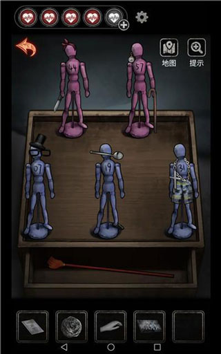 1、檢查室,點擊玻璃里的機器,木偶放進去,外面電腦顯示兩個圖案。