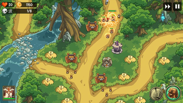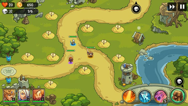 在進入戰(zhàn)斗時我們三位英雄邊上的土包就是我們需要建造防御塔的地方了,只需要點擊土包然后選擇防御塔的類型點擊對號就可以創(chuàng)建成功,如果金幣足夠多的話是可以升級你的防御塔的等級越高攻擊傷害越大。如果金幣不多的話那么優(yōu)先升級在路口前端最先和敵人戰(zhàn)斗的防御塔。