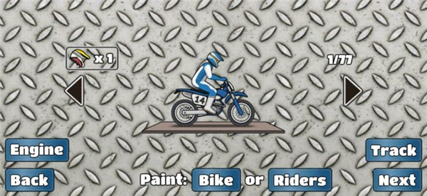 1、打開鬼火摩托車游戲,選擇好心儀的摩托車和角色點(diǎn)擊next就可以開始游戲了,