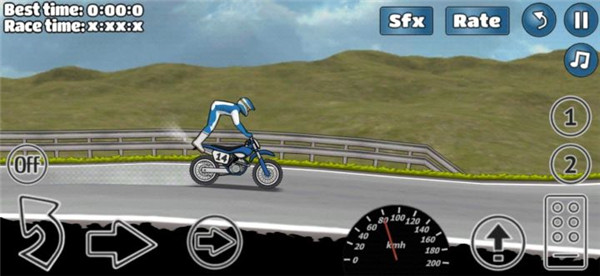 3、控制摩托車的平衡,指尖操作輕松駕駛,在困難的軌道上展示雜技動(dòng)作,各種樂趣和快樂。
