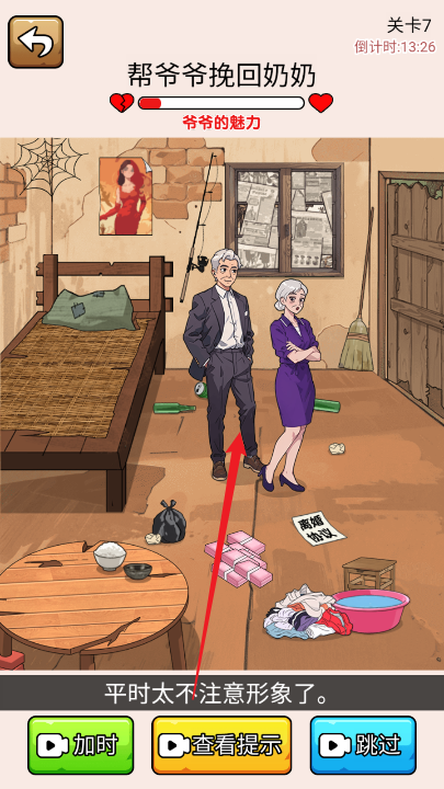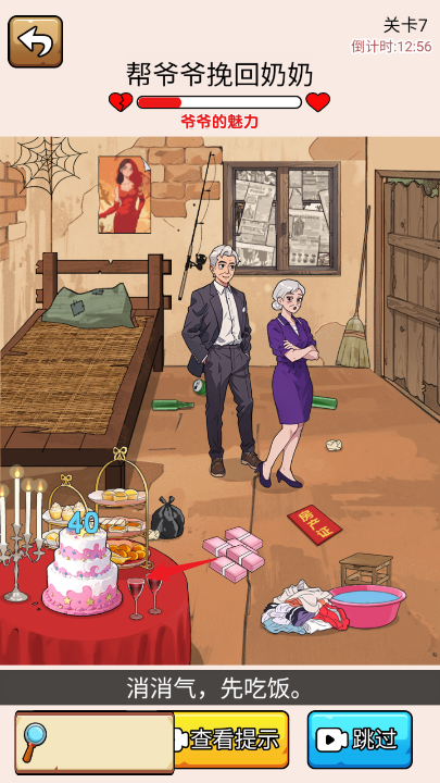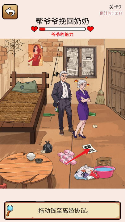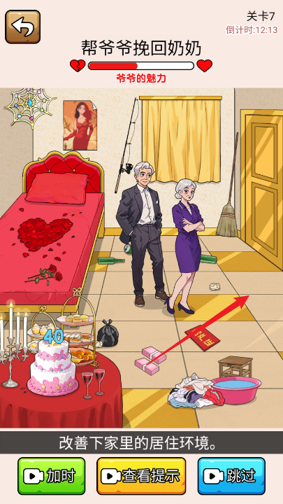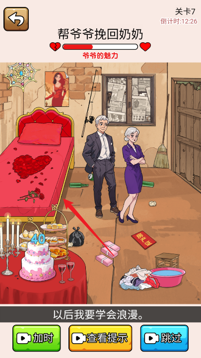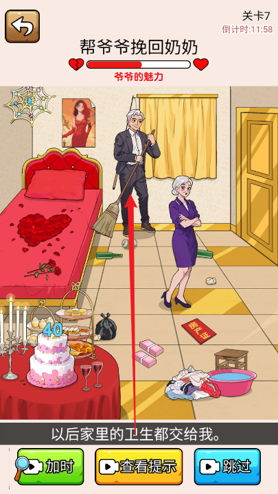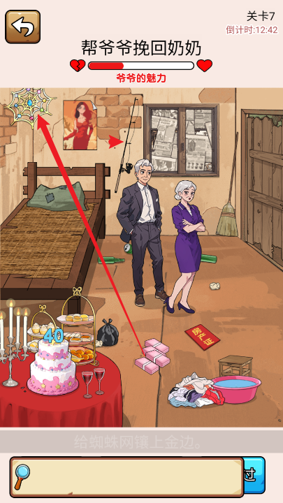游戲中幫爺爺挽回奶奶通關(guān)這關(guān)是最有趣也相對較難的,以下就是這關(guān)卡的攻略