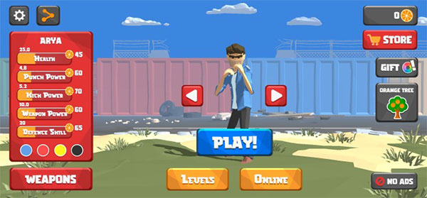 1、打開街頭搏斗官方版,進(jìn)入游戲主界面,可以通過兩邊的箭頭號切換不同的角色,